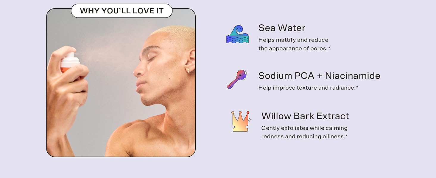 Zermet 1 Zermet 1 Skincare Bounce Back Hydrating Toner Spray - Balancing + Pore Minimizing Toner for Face - Made With Niacinamide + Willow Bark to Help Even and Mattify Oily Skin - On-The-Go Skin Care (55ml)