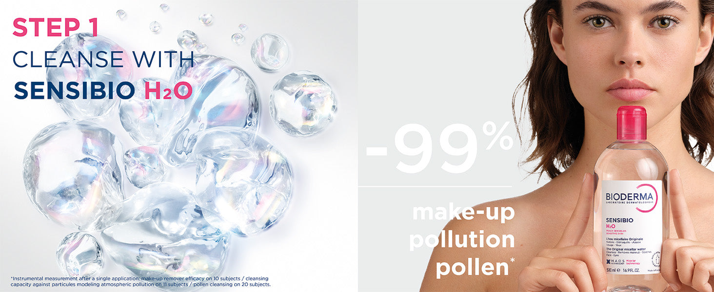 Sensibio H2O Micellar Water gently cleanses, removes makeup and soothes the skin .