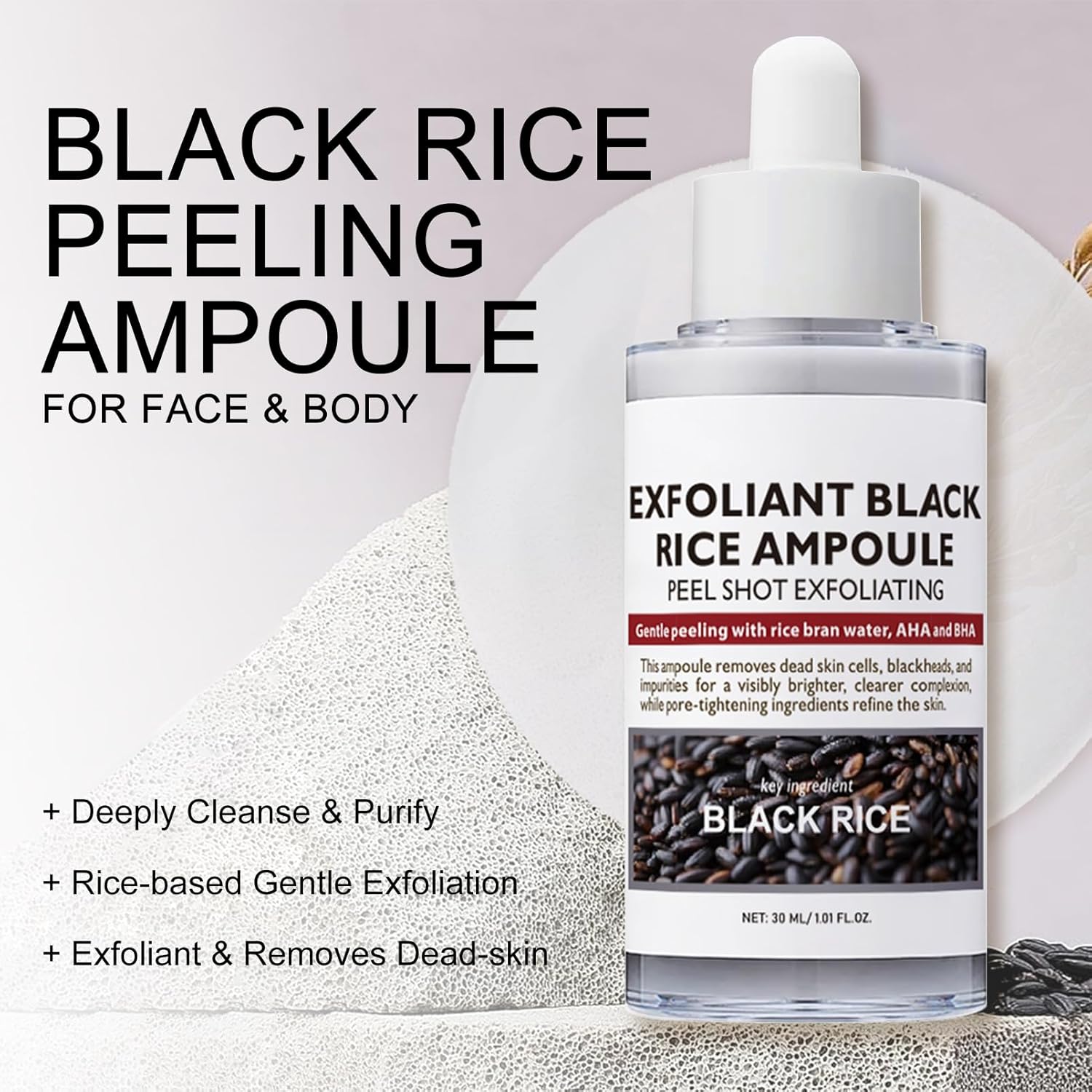 Zermet 1 Black-Rice Peeling Ampoule, Face Exfoliator Pore Minimizer for Face, Rice Ampoule Soft Exfoliating Face&Body Scrub Dead Skin Remover, Moisturizing, Smooth, Nourish, Korean Skin Care (1 Pack)