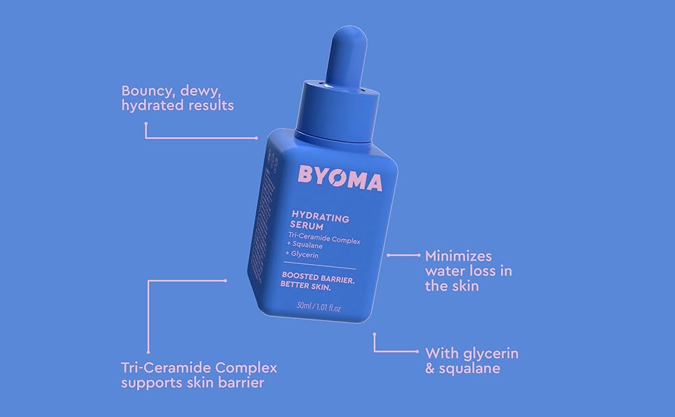 BYOMA's ultra-lightweight, moisture-boosting Hydrating Serum is enriched with hydrating heroes for bouncy, glowing skin + strengthened skin barrier function