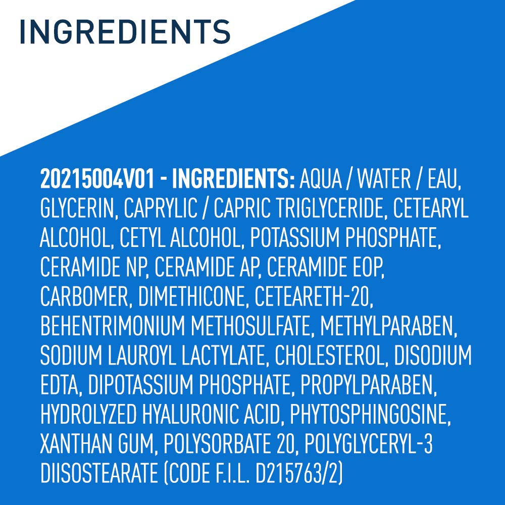 Formulated with Hyaluronic Acid to help retain skin’s natural moisture, 3 Essential Ceramides to help restore & maintain the skin’s natural moisture barrier, and MVE Technology to provide long lasting continuous hydration.