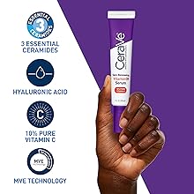 Developed with dermatologists, CeraVe Vitamin C Facial Serum visibly brightens & helps to restore the protective skin barrier. Potent antioxidant L-Ascorbic acid (the purest form of vitamin C for face) helps to even skin tone & continuously brighten while helping to defend against free radicals & provide antioxidant benefits. This vitamin c brightening serum's gentle, lightweight formula helps restore the protective skin barrier & improve hydration, leaving skin soft, radiant, & healthy-looking. Paraben-Free Fragrance-Free Non-Comedogenic Key Ingredients: 10% Pure Vitamin C: Formulated with 10% l-ascorbic acid, this formula helps visibly brighten and provide antioxidant benefits. Ceramides: Essential for healthy skin, ceramides help restore and maintain the skin’s natural barrier Hyaluronic Acid: This ingredient attracts hydration to the skin’s surface and helps the skin retain moisture