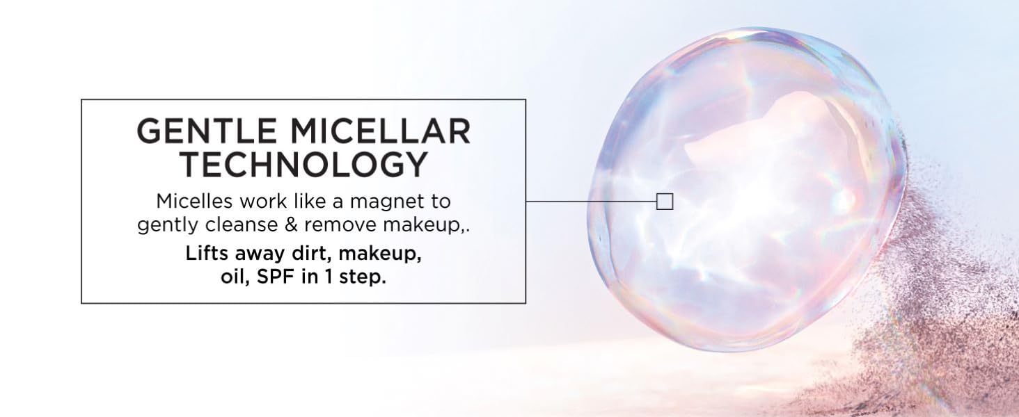 This All-in-1 Micellar Cleansing Water is surprisingly powerful yet gentle to skin. It effectively removes makeup, cleanses and refreshes skin. A multi-purpose cleanser that contains Micellar technology. Like a magnet, micelles capture and lift away dirt, oil and makeup without harsh rubbing, leaving skin perfectly clean, hydrated and refreshed without over-drying. • All-in-1 cleanser and makeup remover cleanses, removes makeup and refreshes skin • Oil-Free, Alcohol-Free, Fragrance-Free • Micelle Technology attracts dirt, oil and makeup like a magnet without harsh rubbing • All skin types, even sensitive TO REMOVE EYE MAKEUP: Hold pad over closed eyes for a few seconds, then gently wipe without harsh rubbing. TO CLEAN SKIN & REMOVE FACE MAKEUP: Gently wipe all over until skin is completely clean from makeup and impurities. Use daily, AM/PM. No need to rinse. Avoid contact with eyes. If contact occurs, rinse thoroughly with water.