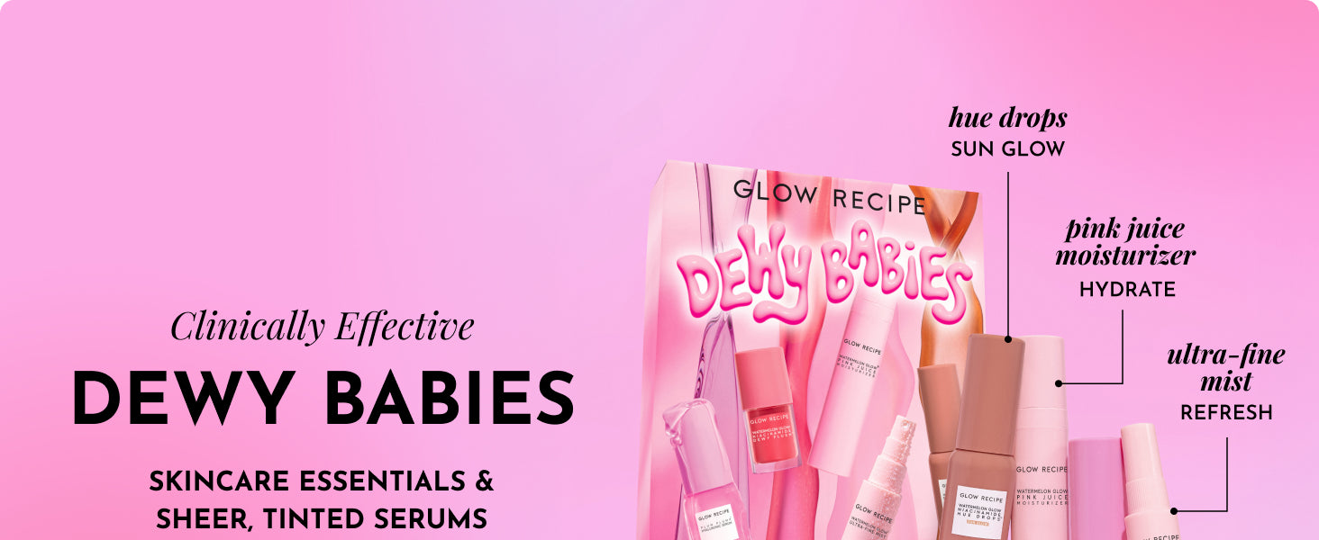 Zermet 1 Glow Recipe Dewy Babies Travel Skincare Set - Plum Plump Hyaluronic Acid Serum + Dewy Flush Tinted Blush Drops + Pink Juice Face Moisturizer + Bronzing Hue Drops + Ultra Fine Facial Mist (5 Count)