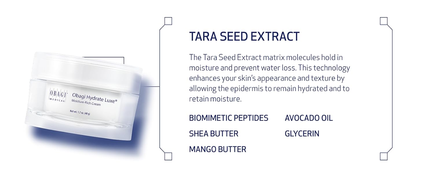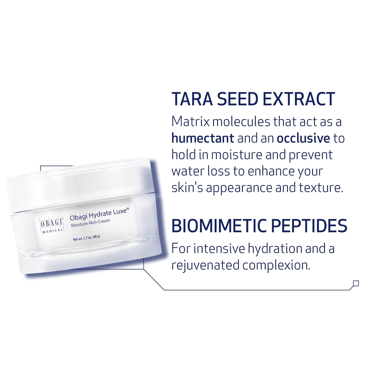 Zermet 1 Obagi Hydrate Luxe Ultra-Rich Moisturizer – Non-Comedogenic with Tara Seed Extract and Biomimetic Peptides – Night Face Cream for Dry, Sensitive, or Aging Skin