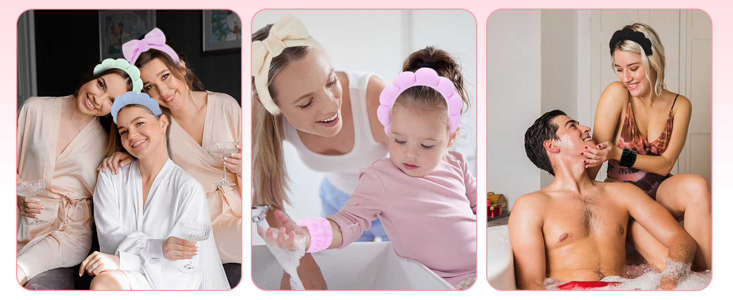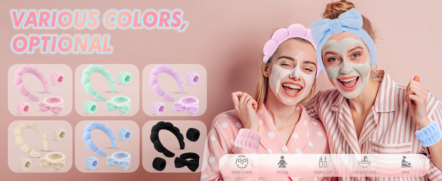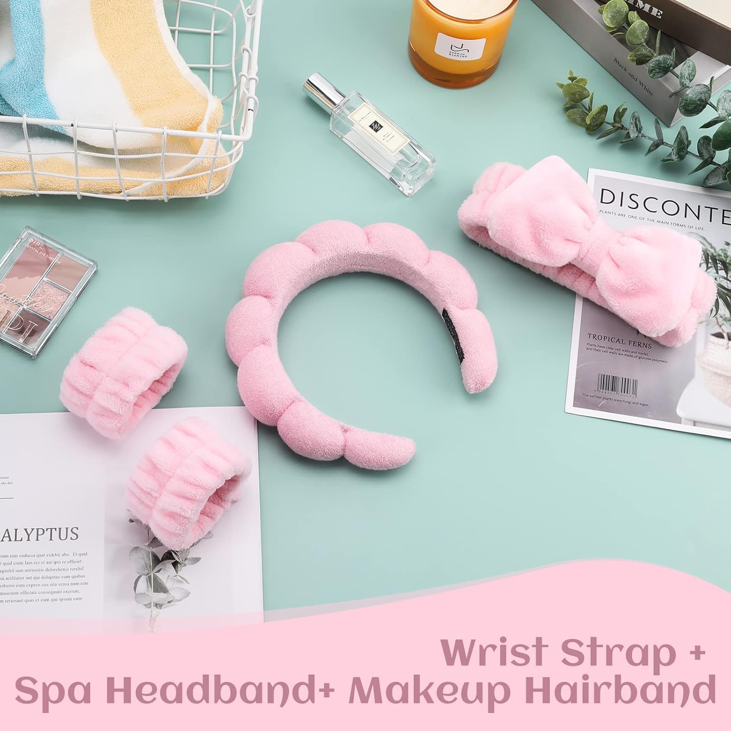 Zermet 1 Puffy Spa Headband & Skincare Headbands for Women Makeup,Terry Cloth Towel Head Band for Skin Care,Sponge Make Up Hair Band for Girls,Face Wash Wristband Scrunchies Set 4 Pcs