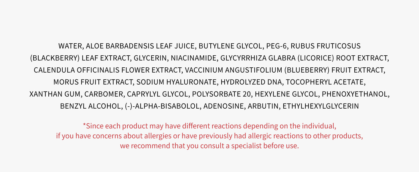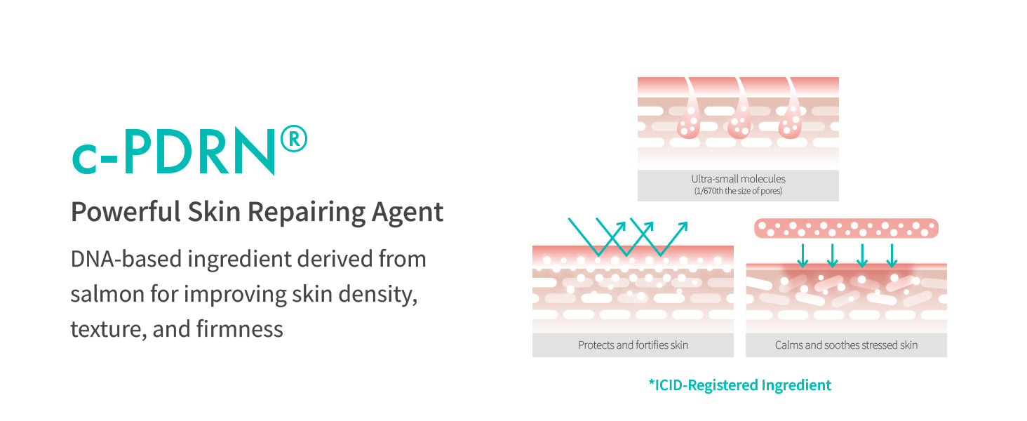 • PDRN (Polydeoxyribonucleotide) is a powerful skin-repairing ingredient derived from salmon DNA. It promotes skin regeneration, improves elasticity, and helps restore a smooth, healthy complexion.