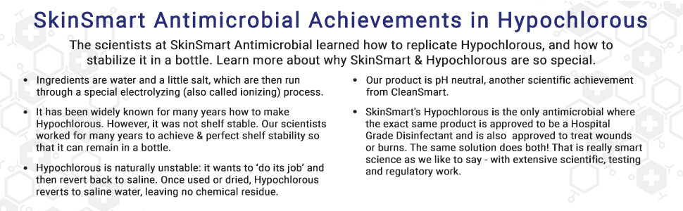 • SkinSmart Antimicrobial uses a medical-grade technology called Hypochlorous.