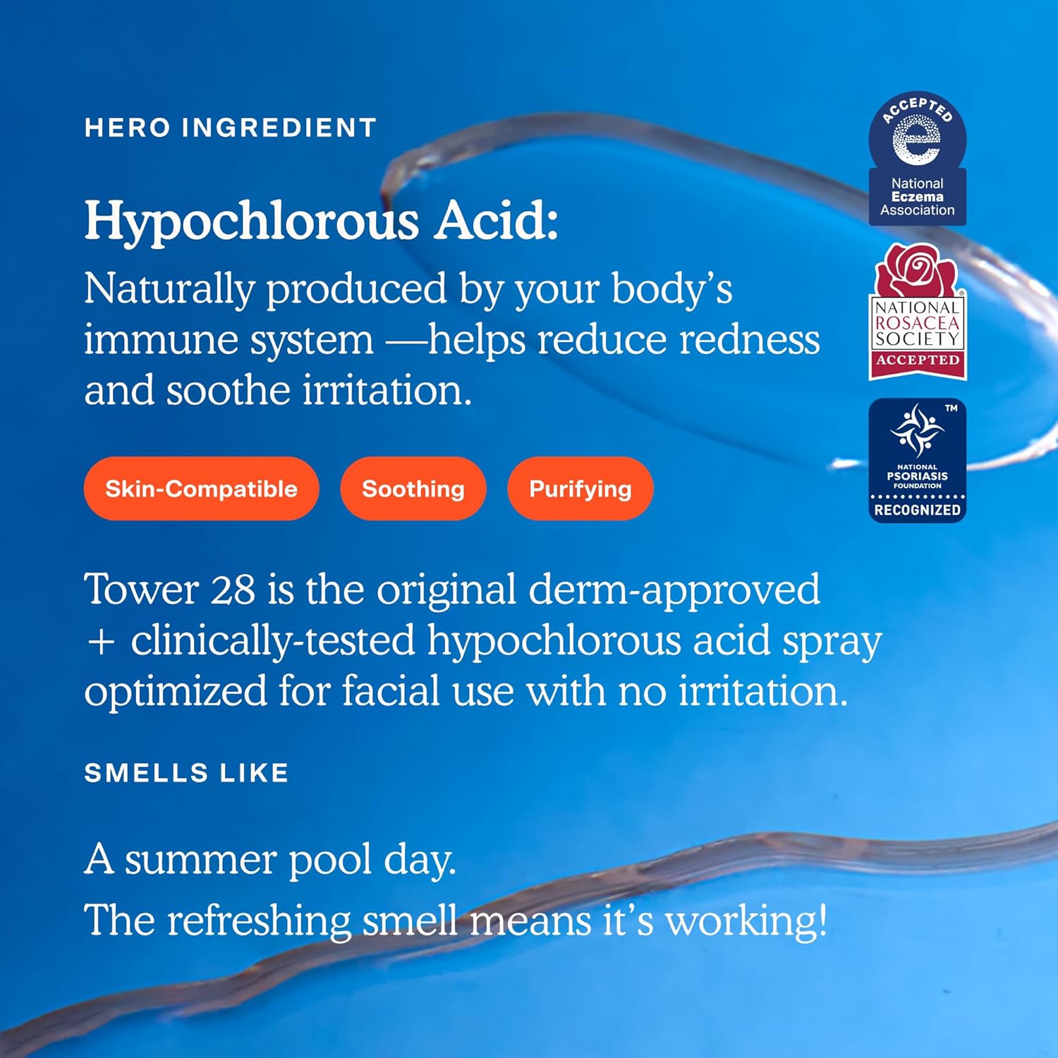 Zermet 1 Tower 28 SOS Daily Rescue Facial Spray for Sensitive Skin, Hypochlorous Acid Spray Helps Reduce Redness and Breakouts, Travel Size Toner for Face, 1 FL Oz