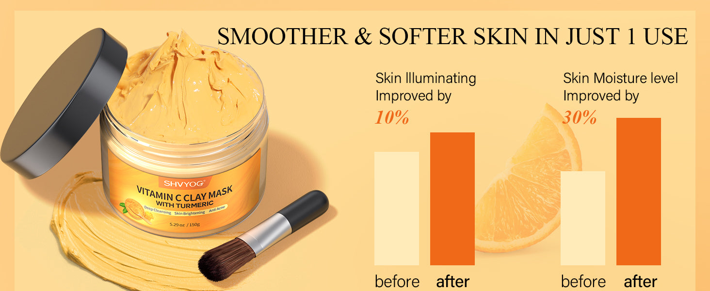 Zermet 1 Vitamin C Face Mask with Kaolin Clay and Turmeric for Dark Spots, Dull Skin, Skincare Facial Mask for Controlling Oil and Refining Pores 5.29 Oz
