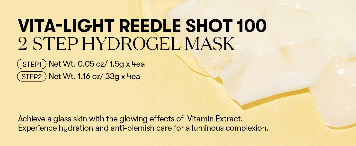 Zermet 1 Zermet 1 Vita-Light Reedle Shot 100 2-Step Hydrogel Mask(34.5gx4ea), Intensive Glowing, Exosome Glutathione Face Mask, Overnight Melting Mask, Korean Facial Mask